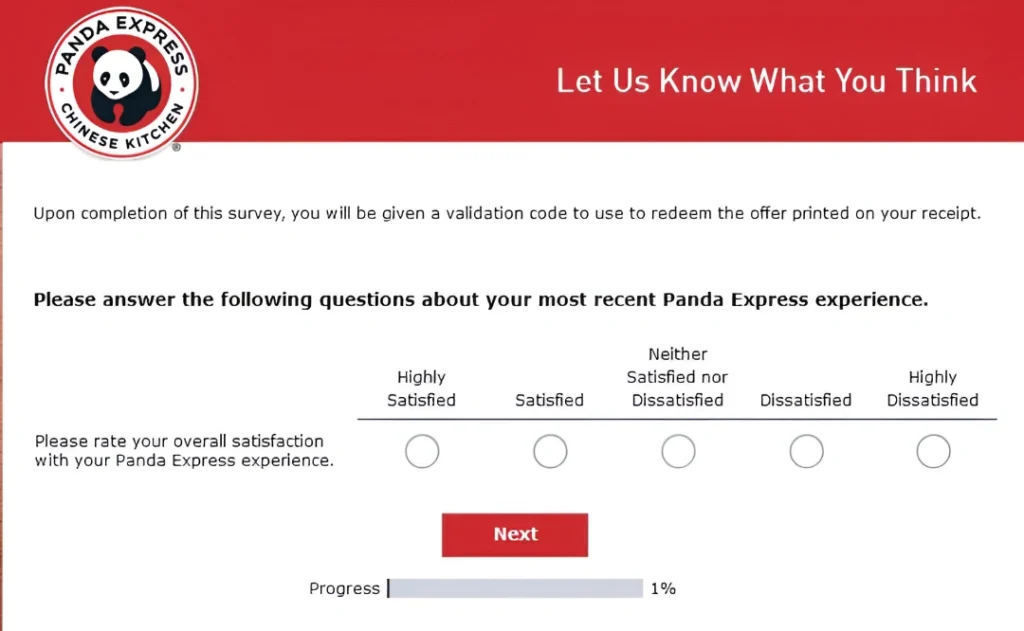Pandaguestexperience is the official Panda Express customer feedback survey program. It’s designed to collect real customer opinions about your recent visit—things like food quality, service speed, staff behavior, cleanliness, and overall satisfaction. After you complete the survey, Panda Express typically provides a reward offer (such as a free entrée with a qualifying purchase), which helps encourage customers to share honest feedback.